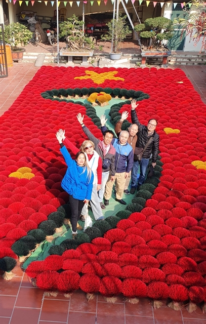 | SEEING RED: Visitors check in at the Quảng Phú Cầu incense-making village. VNS Photo of Mai Trung Kiên |