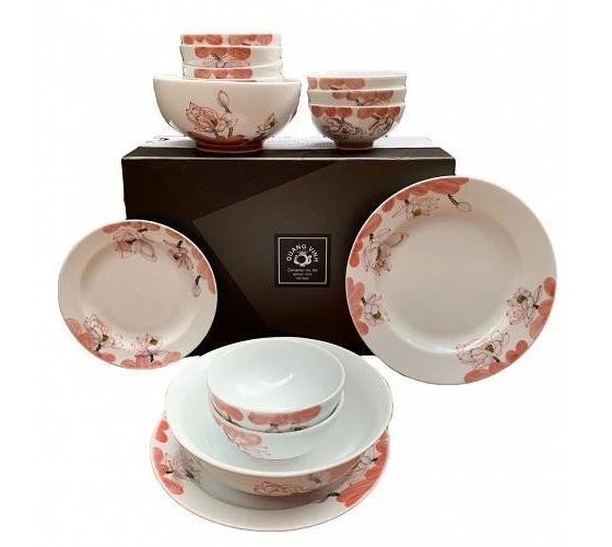 Bộ bát đĩa gốm sứ hoa sen đỏ